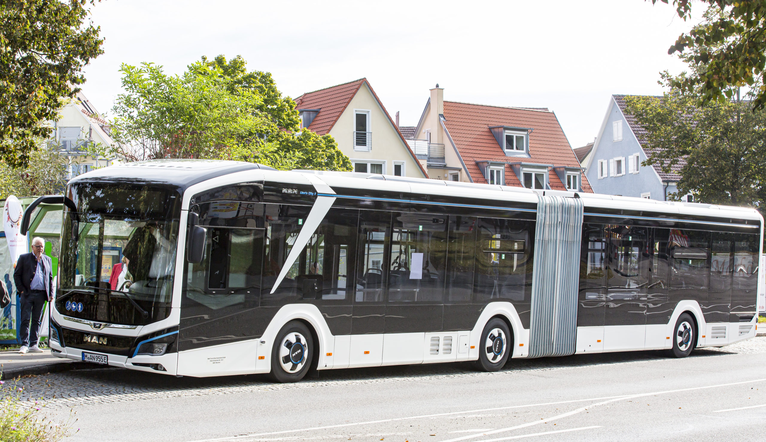 Unsere Grüne Kreisrätin Elke Müller stellte der Stadt zum Nachhaltigkeitstag über Kontakte einen ganz besonderen Bus samt Fahrer als Shuttlebus zur Verfügung: Den vollelektrischen Elektro-Stadtbus Lion´s City E MAN mit einer Reichweite von 550 km.